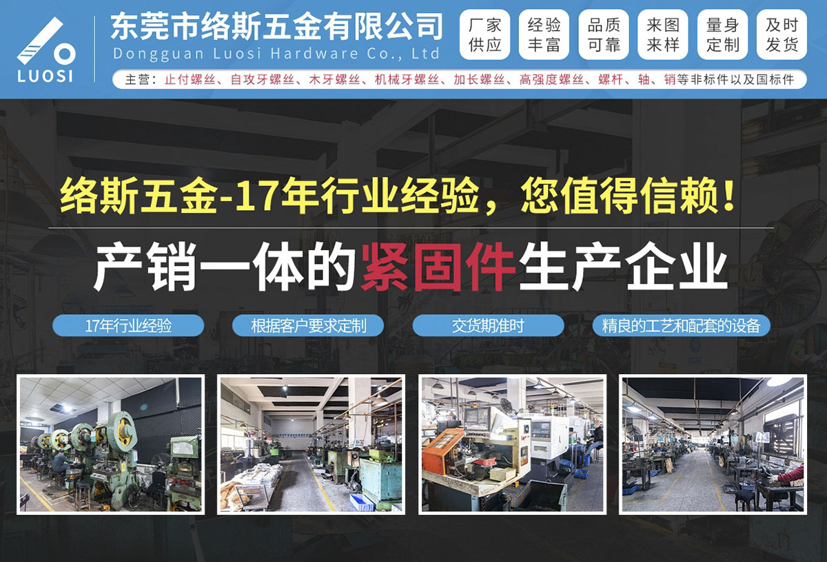 東莞市絡(luò)斯五金有限公司自2006年成立,設(shè)廠于東莞市橫瀝鎮(zhèn)村頭工業(yè)區(qū),是一家產(chǎn)銷一體的專業(yè)緊固件生產(chǎn)企業(yè)。